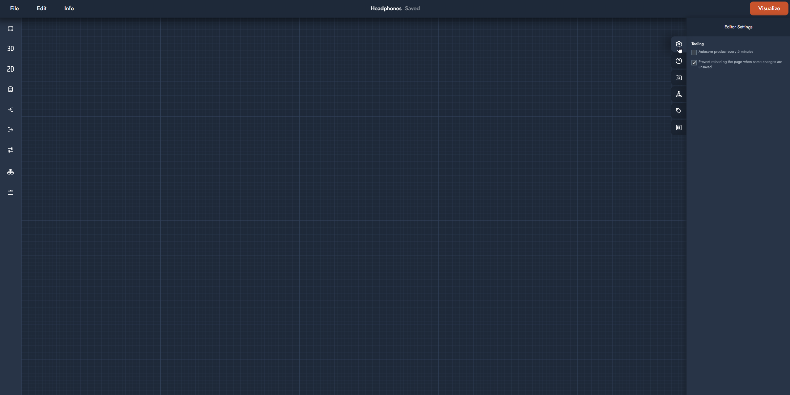 Users can toggle between an expanded and collapsed settings menu by clicking on one of the six settings icons.