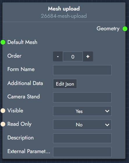 This will add a file dialog where you can upload OBJ meshes. The uploaded mesh will be outputted from this node.