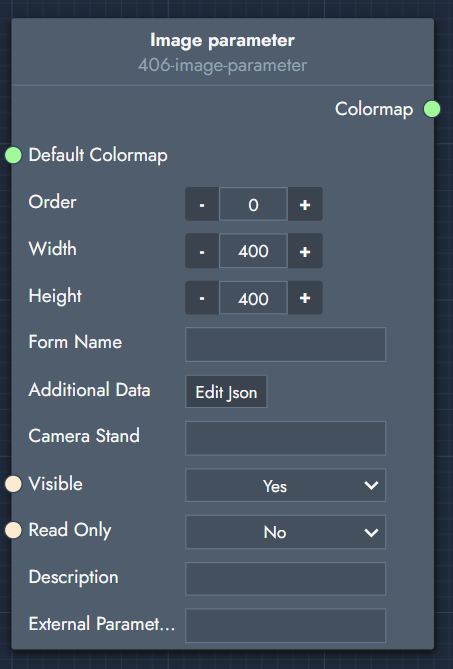 Default Colormap: Link a 2D image to this and it will appear as the default colormap. As soon as you upload something new, it will take the place of this shape.