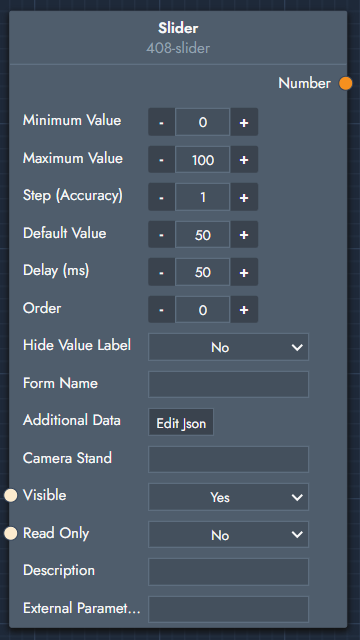 Step (Accuracy): If you want the slider's steps to have a specific value. For example if you have a slider that has min-max values 0-1, you can input a value of 0,1.