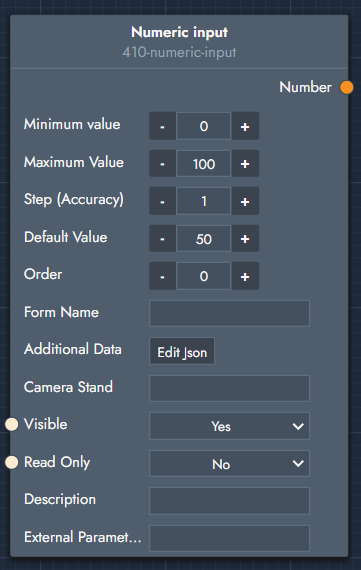 Step (Accuracy): If you want the numeric input's steps to have a specific value. For example if you have a numeric input that has min-max values 0-1, you can input a value of 0,1.