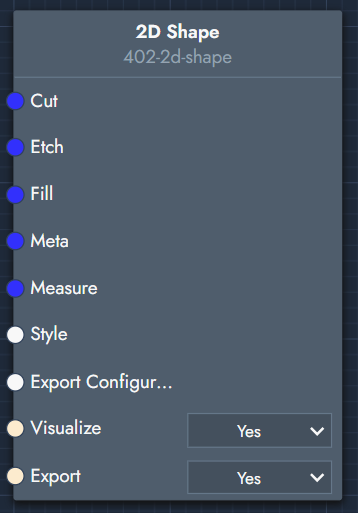 2D shape | Visualizes and or exports a 2D vector file (SVG, DXF or PDF). | ![]()
